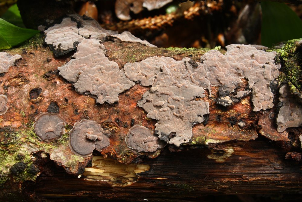 Hier tippe ich auf Peniophora quercina, das Holz sollte Eiche gewesen sein, denn ansonsten gab's nur Carpinus. So frisch hatte ich den noch nie.