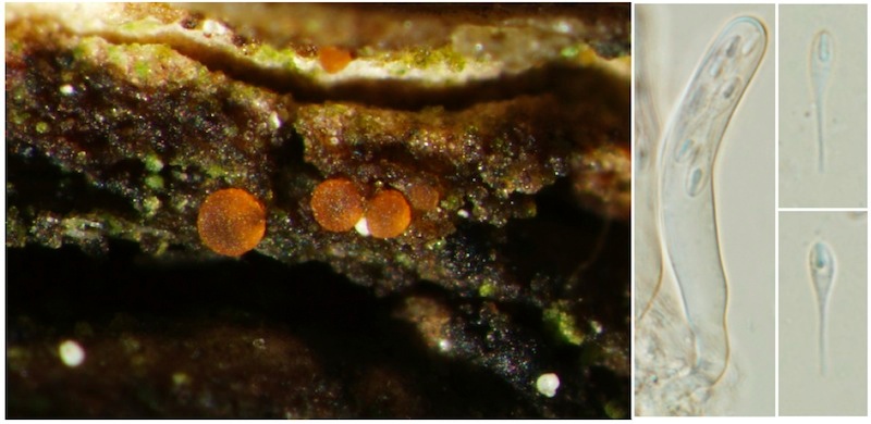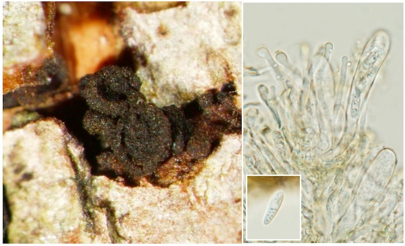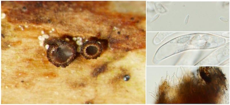 Rhododendron ist überhaupt ein sehr spannendes Substrat für Schlauchpilze, und es gibt auch einiges an Literatur dazu. Sehr zu empfehlen ist Remler (Bibliotheca Mycologica 68, 1979), damit kann man meiner Erfahrung nach einen schönen Teil der bei uns vorkommenden Ascomyceten bestimmen. So z. B. auch Capronia vaga, die aufgrund ihrer winzigen Fruchtkörper leicht übersehen wird aber immer wieder auf entrindeten Ästen anzutreffen ist. Ende Mai fand ich auch noch Remleria myrtillinoides auf R. ferrugineum, ein hübscher, gelber Becherling, der aber noch genauer untersucht wird, weshalb ich derzeit keine Fotos zeigen möchte.
