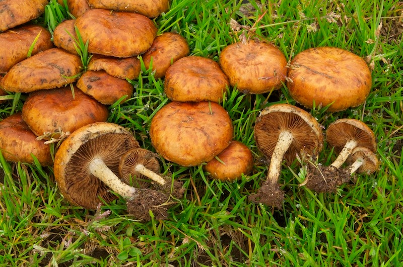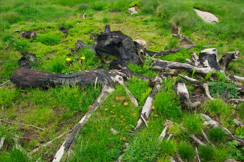Ab und an stolpert man aber auch über "gscheite Schwammerl", so wuchs z. B. der Gewöhnliche Kohlen-Schüppling (Pholiota highlandensis) massenhaft auf verbrannten Fichten-Wurzelstöcken in einem Weidebereich. Im gleichen Gebiet wurde diese Art auch schon 2014 von Rainer Burkard entdeckt (siehe Ö-Datenbank).