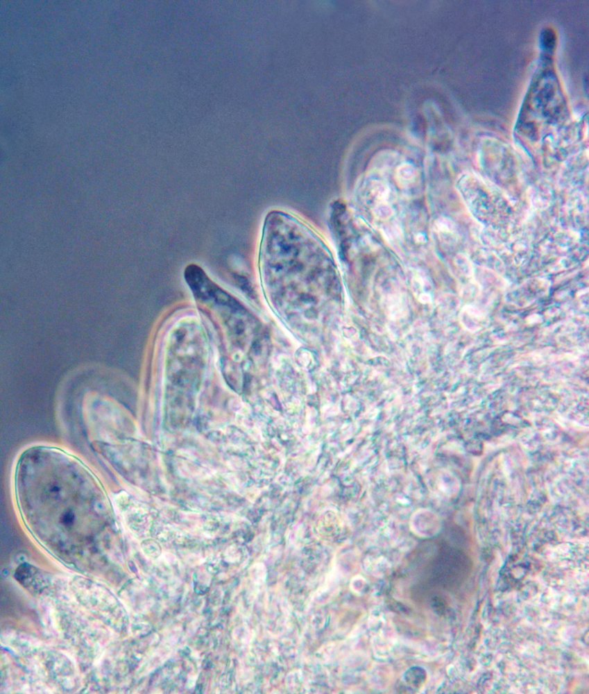 Pluteus ephebeus Elemente der Huthaut Cheilozystiden und eine Spore