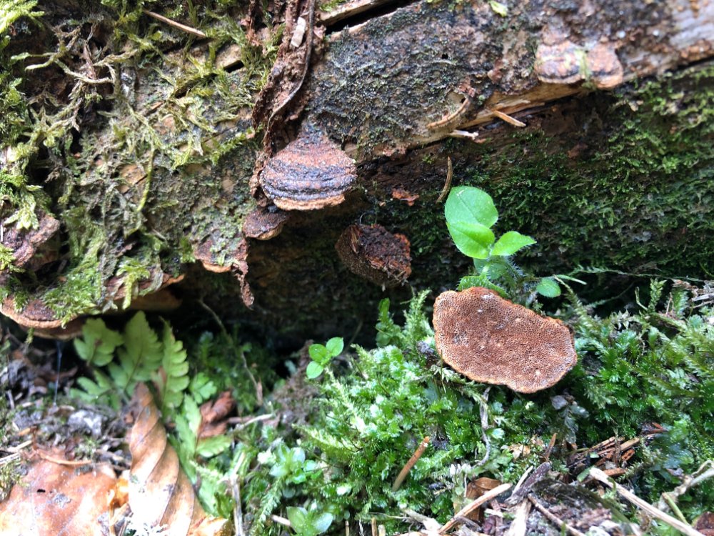 Die Cystostereum war noch ein Stück weiter den Hang hoch, so weit sind wir letztes Jahr gar nicht gegangen. Dort oben waren noch einige wirklich schöne Fichtenstämme mit jeweils mehreren "Urwaldarten" drauf.