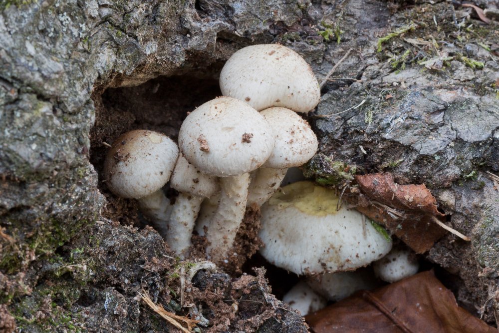 Aufgrund der Trockenheit waren Pilze auf Holz und Höhlen beschränkt. Z. B. unter einer alten Linde ein schönes Grüppchen Pholiota gummosa (bestimmt von Irmgard):