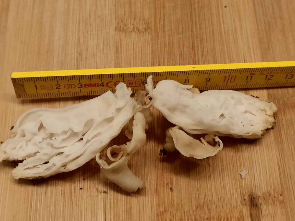 mit der Herbst-Lorchel (Helvella crispa) liegst du sicher nicht verkehrt, wobei die Abgrenzung von H. lactea schwierig ist.