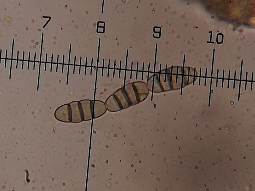 Die Sporen sind 3-fach septiert und haben eine durchschnittliche Größe von 25 x 10 µm.