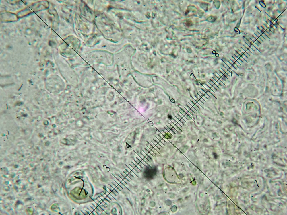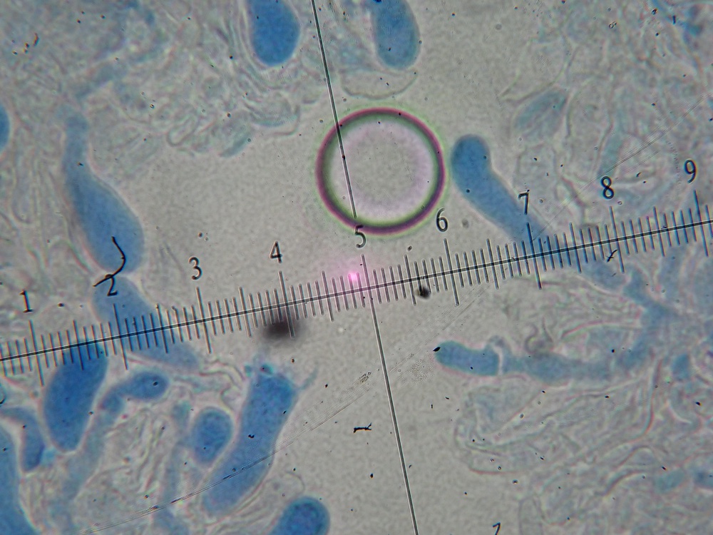 Sporen meist in einem Bereich von 6-8 x 2,5-3,5ym elliptisch, z.T. auch bohnenförmig, Amyloidität nicht eindeutig, deutlich cyanophil