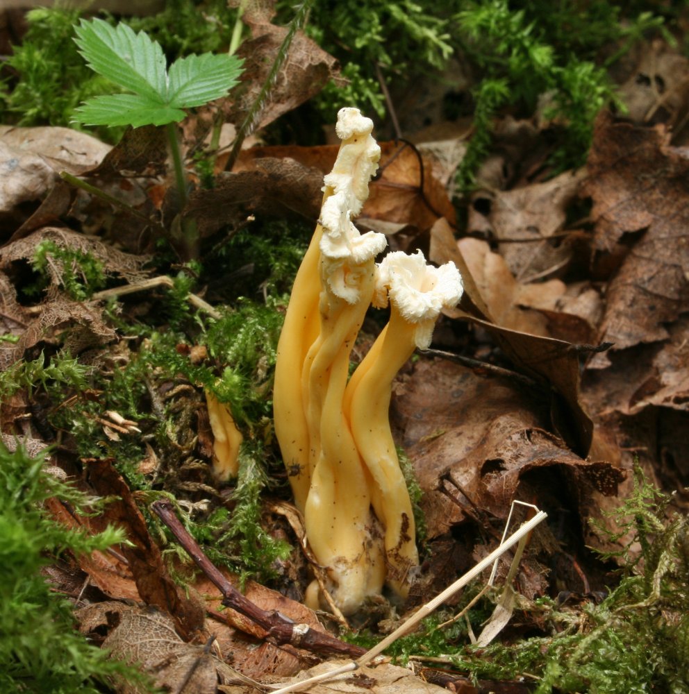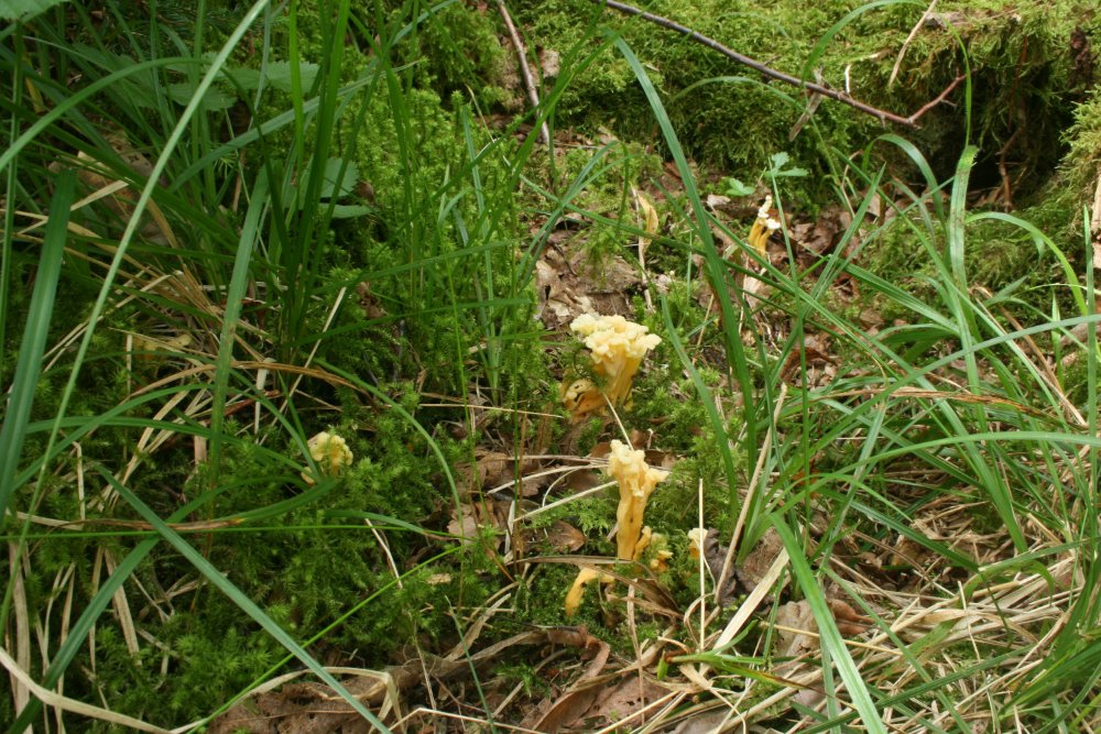 • C. lutescens wurde hier auf dem Hochsträß noch nie gefunden. Ich kenne diese Art aus der Gegend von Uffing am Staffelsee/Oberbayern, immer im sehr feuchten Moos – ich denke stark oberflächensauer – bei Fichte (was natürlich passen würde) . Meinem Fund fehlt (u.a.) der typische fruchtige Geruch.