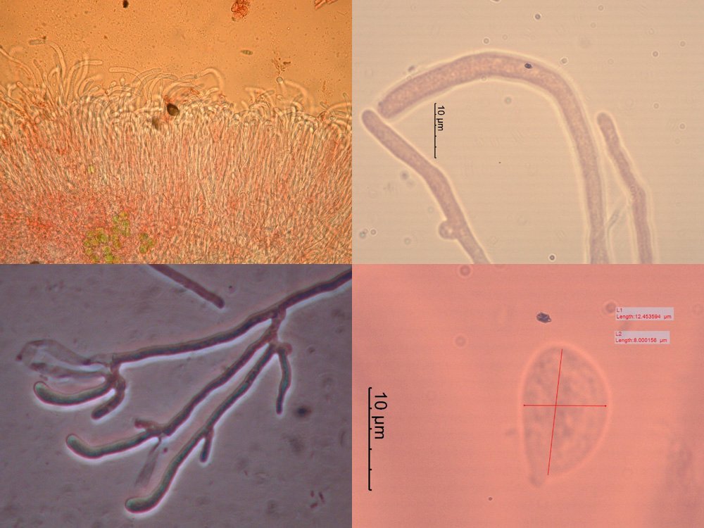 Diese Tremella wird von Walter Jülich in der Kleinen Kryptogamenflora noch geschlüsselt, die Spur verliert sich dann aber in der neueren populären Literatur, so daß ich nicht weiß, ob die Art noch so heißt oder ob es sie überhaupt gibt. Gefunden habe ich nur Hyphenbüschel mit Schnallen. Ich interpretiere sie als "Randhaare". Leider waren nur Sporen da und keine Basidien.