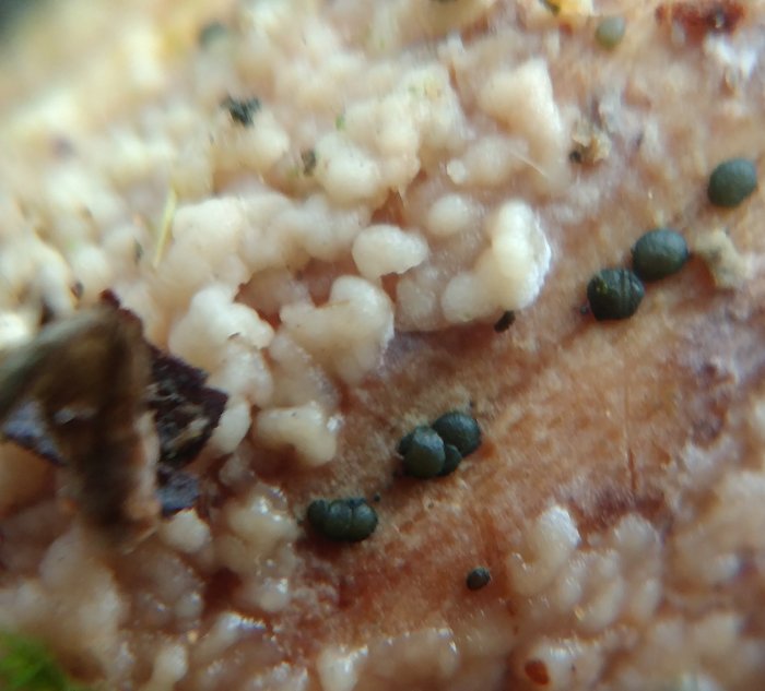 Jedenfalls bilden sich gallertige, cremeweiße Pusteln, die zu einer gyrösen Masse verschmelzen. Im Gelände habe ich noch nicht auf den potentiellen Wirt geachtet, da ich nicht von einer Colacogloea ausging.