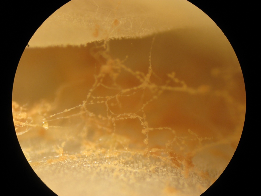 Einige der Myzelfäden auf einen Agar-Nährboden zu übertragen würde weiterhelfen, um später makroskopisch und mikroskopisch