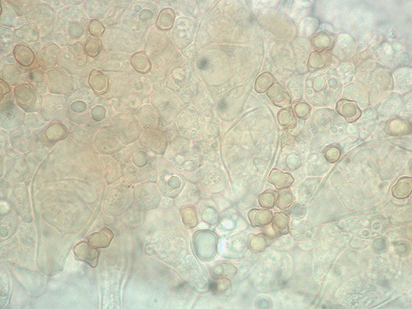 Die Sporengröße variabel von 7-8 (9) x 4,6-5,5 (6) µm. Die Höker m.E. wenig ausgeprägt. Cheilozystiden von zweierlei Art,