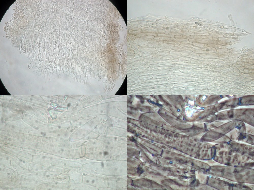 Kaulozystiden habe ich eben keine gefunden, aber am Stiel genügend hyphige Zellen mit abgerundeten Endzellen (am 4. Foto rechts unten).