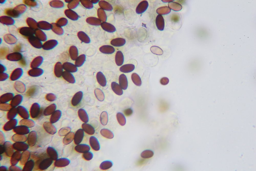 die Sporen habe ich mir nochmals angesehen, bevorzugt jene mit Apikulus und Keimporus. Sollte die Seitenansicht, die du meinst, sein.