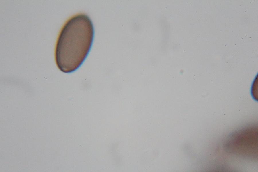 die beiden Sporen, die du zeigst, liegen auf dem Bauch - du schaust von oben drauf, da muss der Porus in der Mitte liegen. Du brauchst Sporen, die du genau von der Seite aus siehst. Makroskopisch denke ich eher an Pr. dorsiporus.