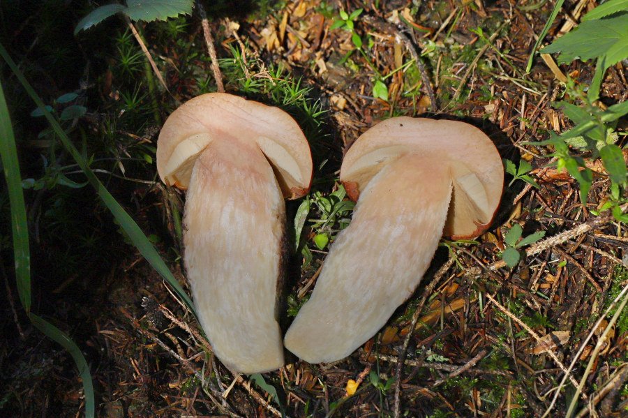 ob man Leccinum piceinum von L. vulpinum sauber trennen kann, wird kontrovers diskutiert. "Meine" Fichtenrotkappe, die ich z.B. aus dem Bayerischen Wald kenne, ist deutlich braunhütiger (dunkles Rotbraun) und die Huthaut steht nicht so stark am Hutrand über. Das sagt aber nichts, da das ja nicht heißt, dass es auch so schön rote Exemplare geben kann (und dass die Huthaut nicht auch mal stark überstehen kann).