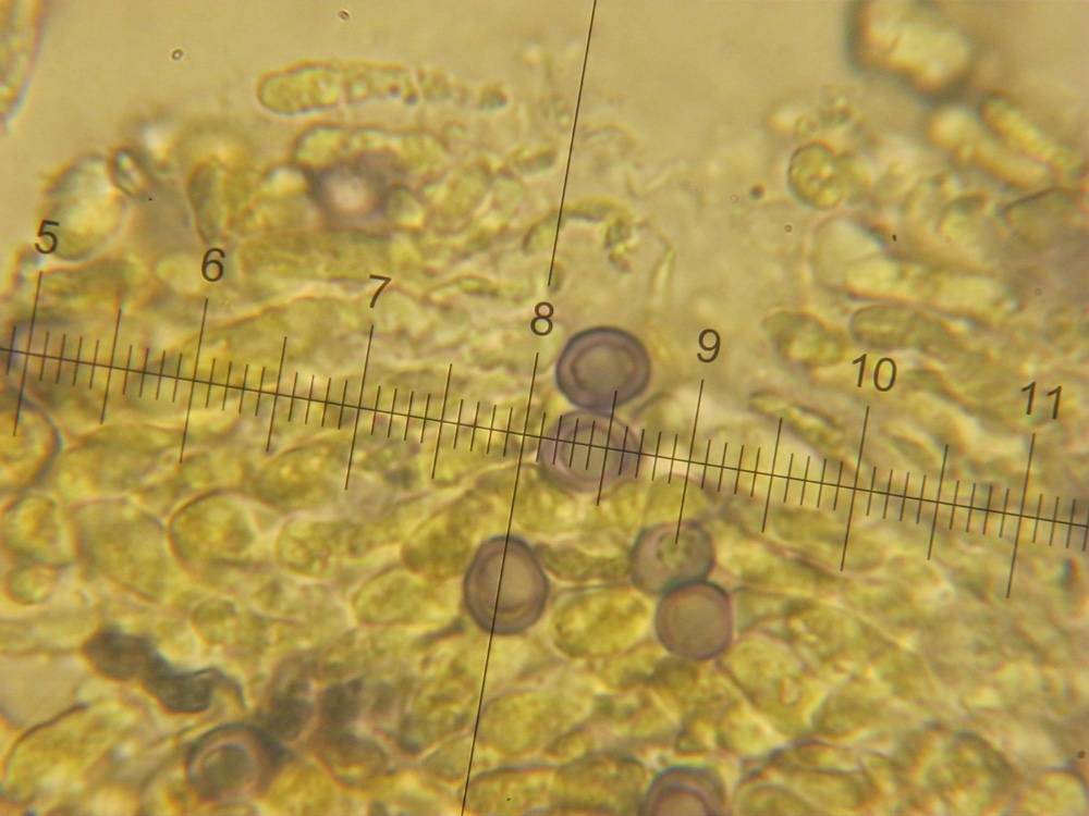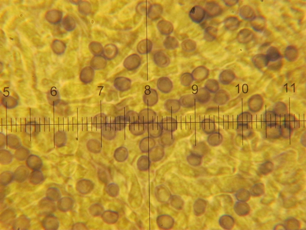 gestern am Allerheiligentag war ich rund um die Steinhofgründe unterwegs. Etwa im Zentum des Gebiets ist ein Schilfteich trockengefallen und am Boden des Teiches wachsen nun die nach der Roten Liste stark gefährdeten Teichrand-Schwefelköpfe. Aufgrund der Sporengröße von 8-9,5x4-5 ym und des Standortes dürfte die Bestimmung nach Hypholoma subericaeum zumindest nach dem Schlüssel im Gröger-Buch ziemlich sicher sein (Beleg vorhanden).