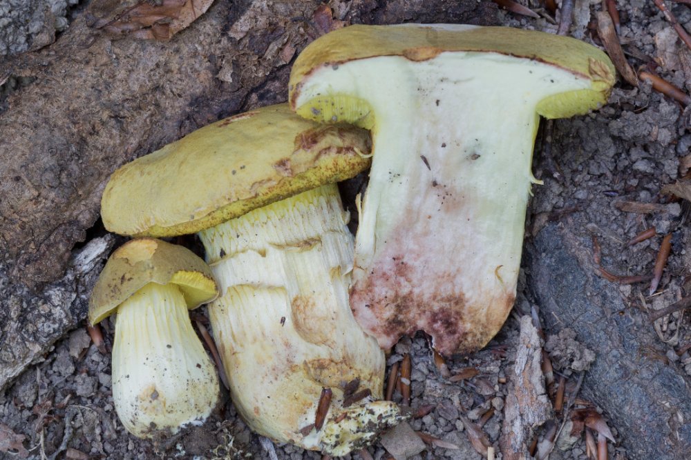 Der Pilz hat nicht geblaut (auch die Poren nicht), war rot überhaucht am Stiel, beim auseinanderschneiden an der Basis rötend, unterhalb der Huthaut sieht man im Schnitt eine deutliche blutrote Linie ... Durchmesser der Kappe ca. 8 cm.
