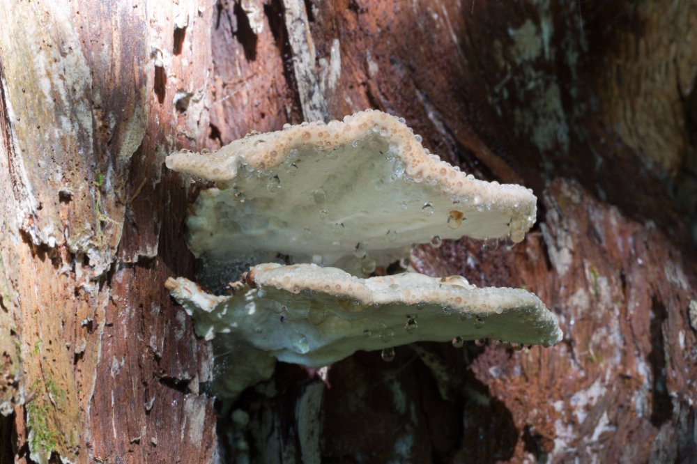 an sehr stark verwitterten Fichten-Strünken immer wieder Oligoporus guttulatus: