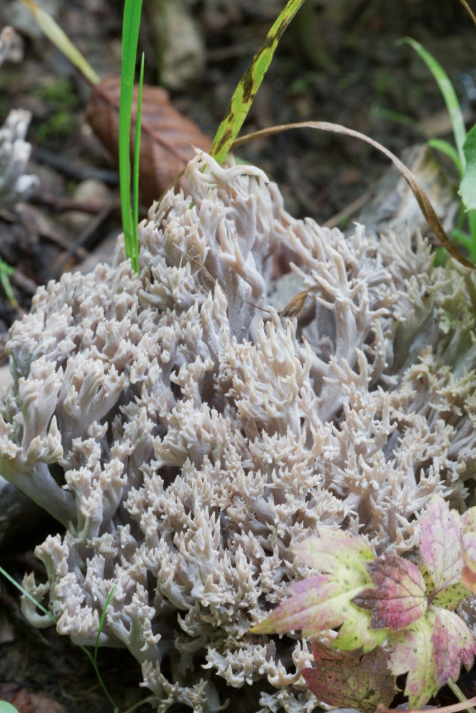 die Clavulina ist deshalb grau, weil sie sehr häufig von einem Parasiten, Helminthosphaeria clavariarum, befallen ist, durch den sie schließlich, wenn der Parasit reif wird, ganz schwarz werden kann.