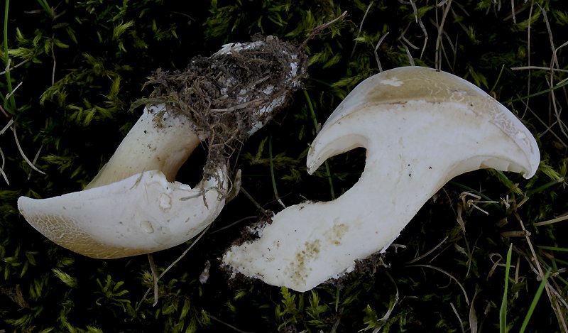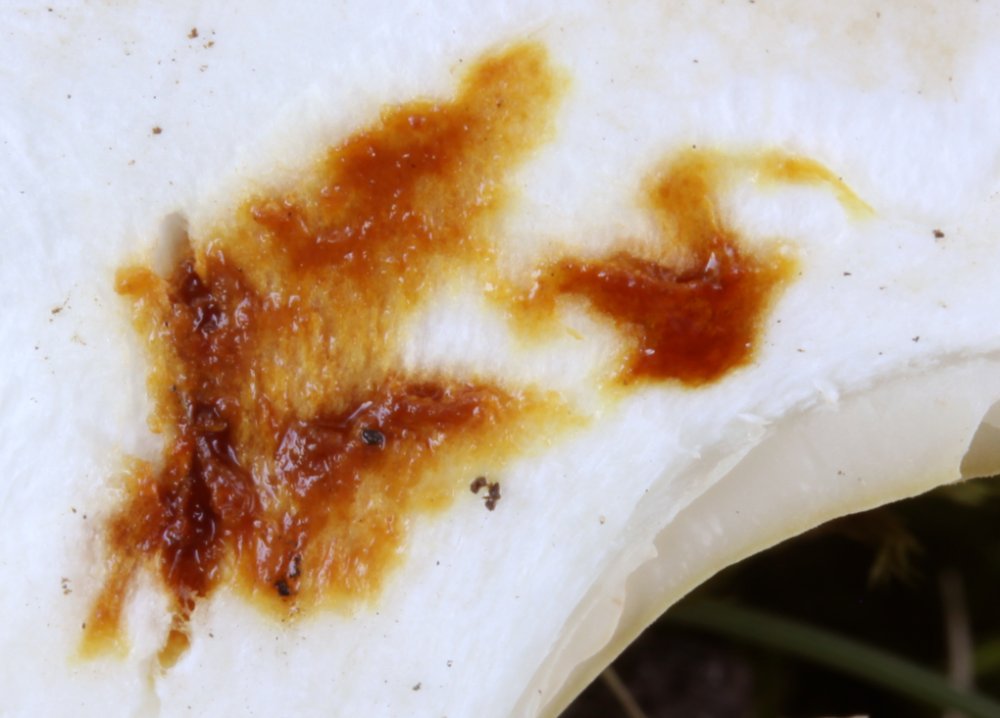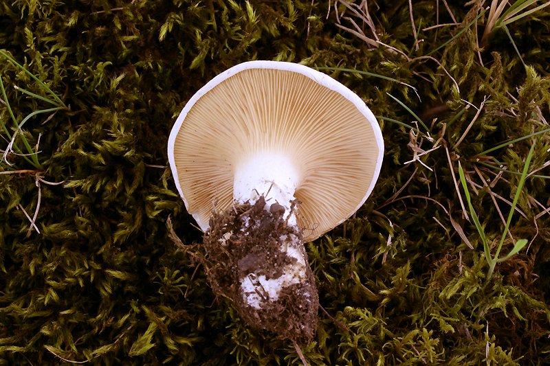 Stiel weiß, basal fleischfarvben durch aufliegendes Sporenpulver