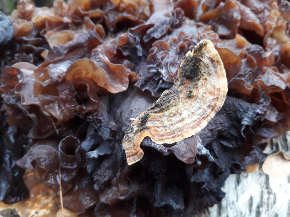 gestern an habe ich an Birke noch folgenden Fund machen können, im Nachbarforum haben wir auch zu einem anderen Zitterling kurz "diskutiert".