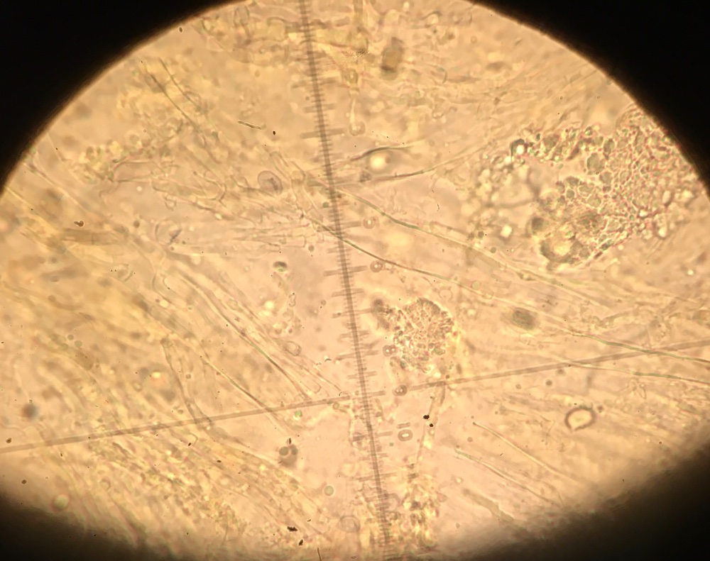 Ich hoffe, meine Bilder sind aussagekräftig genug für eine Bestimmung. Falls nicht, probiere ich es erneut. Mirkoskopiert habe ich etwas von eher gräulichen Bereich.
