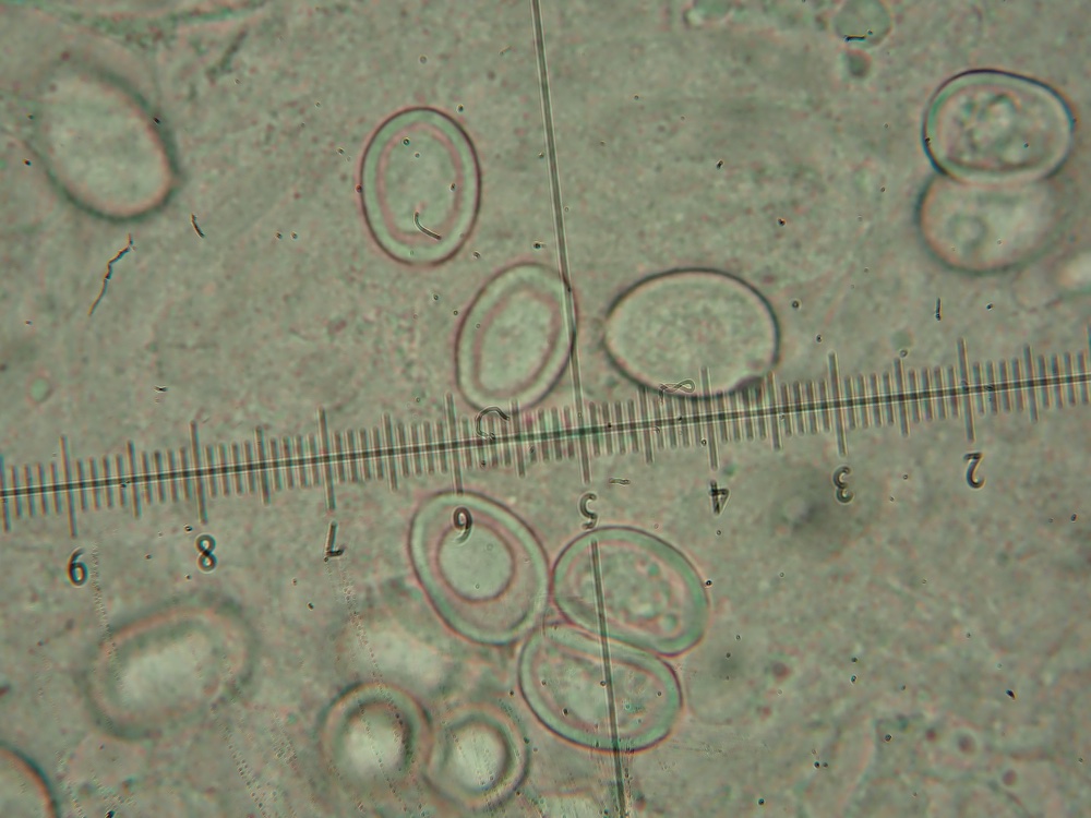 Zuerst war mir nicht klar ob es überhaupt eine Macrolepiota-Art ist oder ev. doch Chlorophyllum oder sogar Leucoagaricus. Nach der Sporenmikroskopie würde ich sagen, es müsste jedenfalls Macrolepiota sein, weil bei einigen Sporen ein hyaliner Kallus zu sehen ist. Oder interpretiere ich die Bilder falsch?