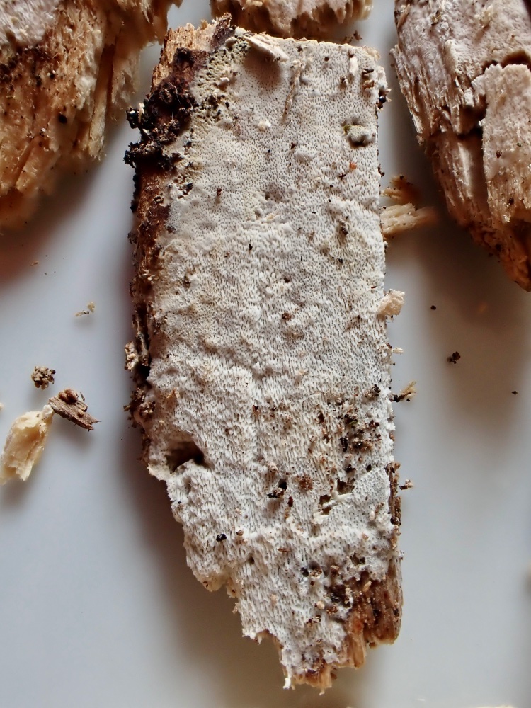 Für Ceriporia würde C. camaresiana am besten passen. Allerdings sollte hier die KOH-Reaktion grünlich sein. Das war definitiv nicht der Fall, eher ein braun-rosa Ton.