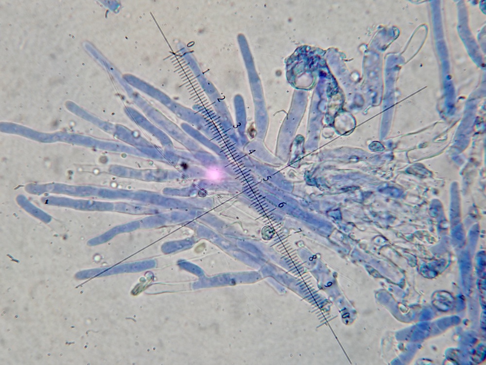 Aus dem Hymenium ragen zwischendurch auch dünne Hyphiden heraus. Siehe Diskussion hier: https://www.pilzforum.eu/board/thread/3 ... ütterzahn/