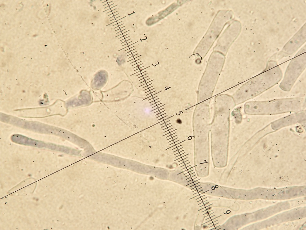 Sporen im Mittel ca. 5,75x2,75 ym (n=10), allantoid mit 1-2 Tropfen