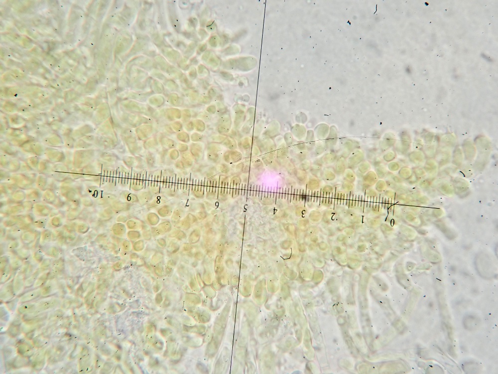 Bei diesem zweiten Pilz käme ich, wenn ich die Mikro diesmal richtig interpretiere, auf Sistotremstrum suecicum agg., der Schwesterart von S. niveocremeum.