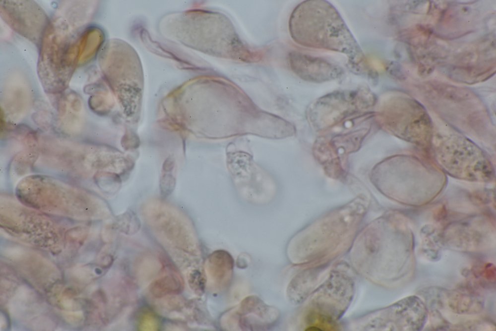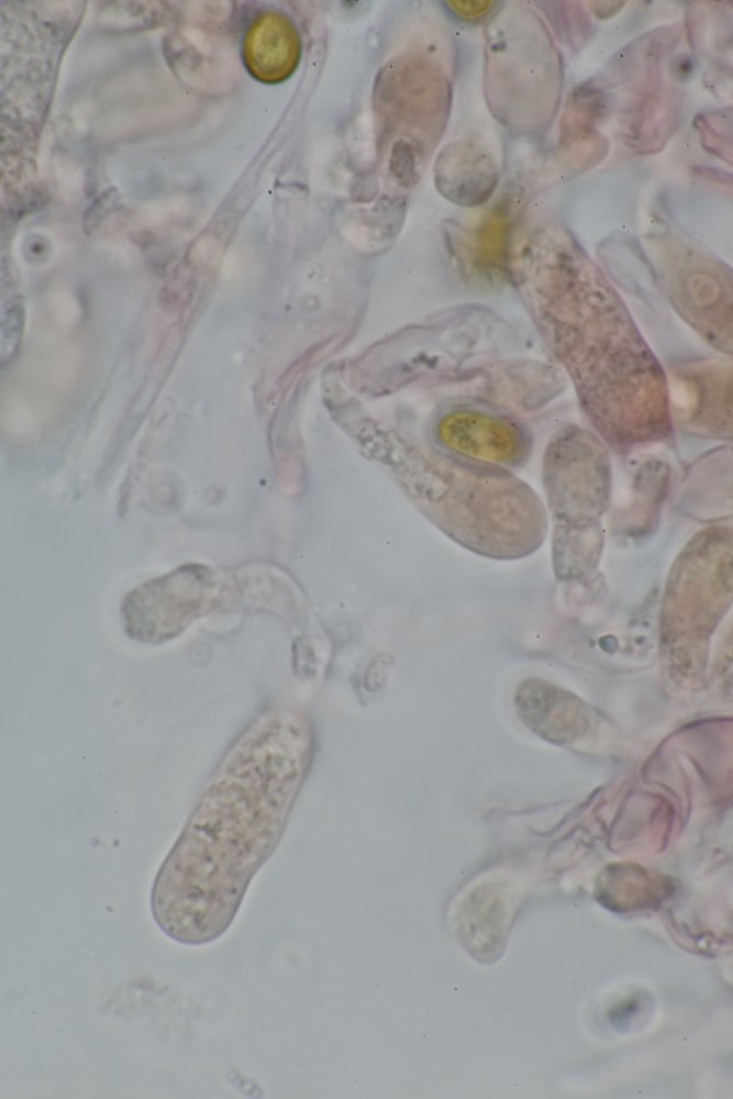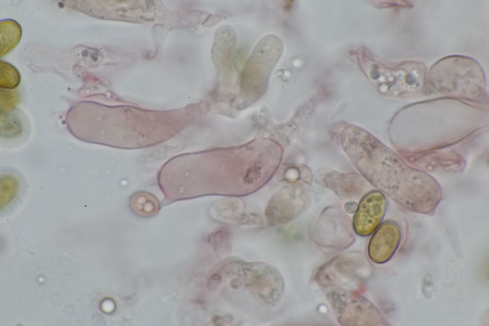 Ich habe allerdings trotz intensiver Suche keine Chrysozystiden gefunden, die Sp. sind eher etwas zu groß. Nachstehend ein paar Makro- und Mikrofotos. Vielleicht kann mir hier jemand weiter helfen.
