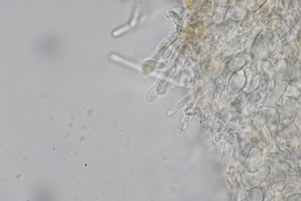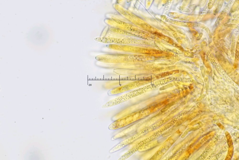 Der Apikalapparat verfärbt sich in Lugol bläulich. Die Paraphysen haben refraktive Vakuolen und überragen die Asci leicht. Haken habe ich keine gefunden, bin mir dabei aber nicht ganz sicher.