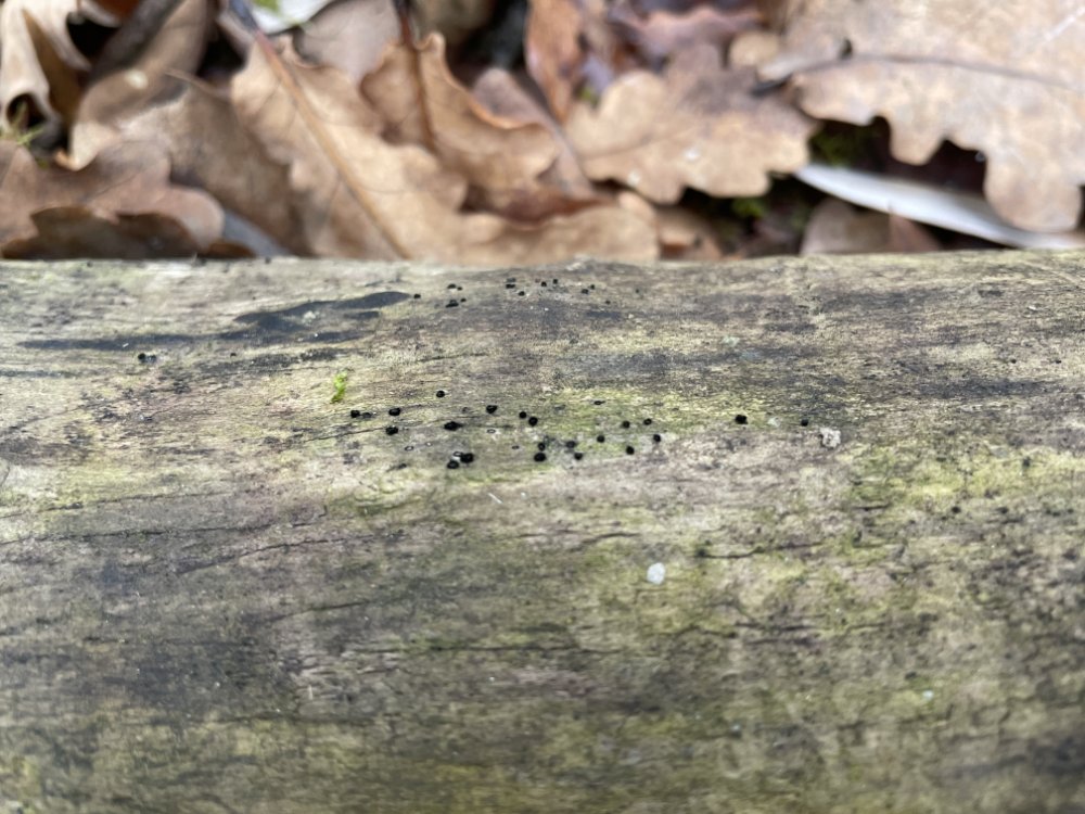 Der zweite Fund auf einem toten Eichenast im Auwald an der Dornbirner Ache ist dem ersten recht ähnlich. Vor allem aufgrund der - zwar signifikant längeren - Anhängsel an den Sporen dachte ich zuerst, dass es sich um die selbe Gattung handeln könnte.