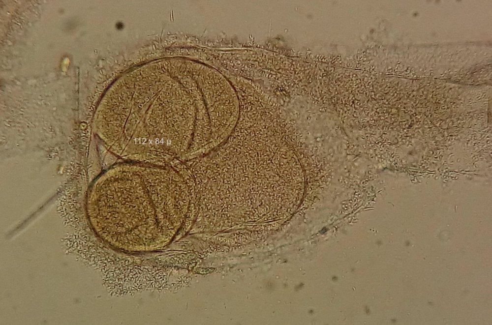 Planosporangien (nach ESSER), von winzigen Wimpertierchen besiedelt; und ein Oogonium. Hyphen im Dunkelfeld von Bakterien umgeben.
