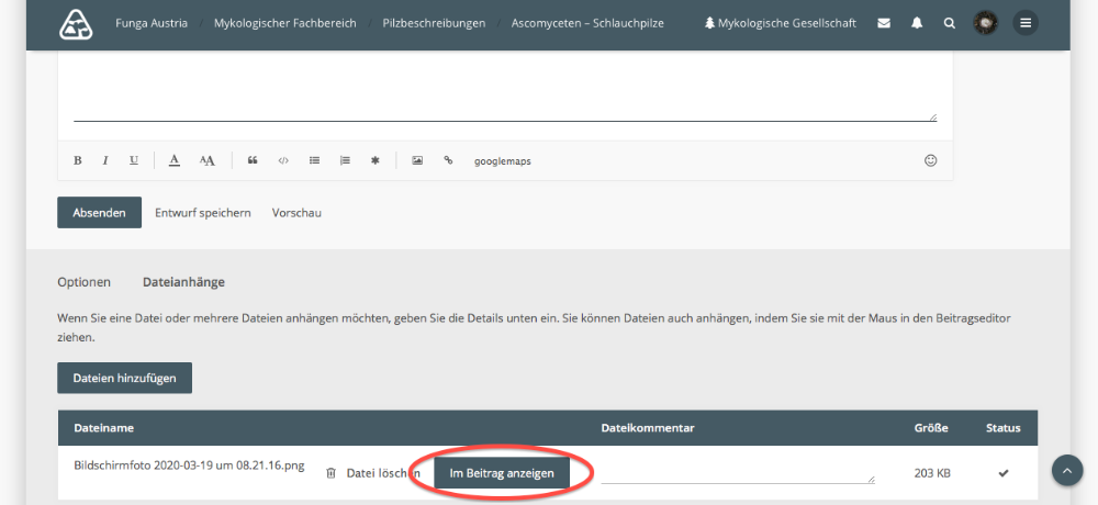 (4) Optional kannst du "Im Beitrag anzeigen" auswählen, dann wird das Foto direkt im Beitrag eingebaut (die Position kannst du bestimmen).