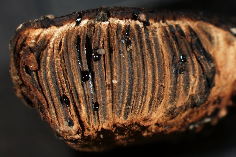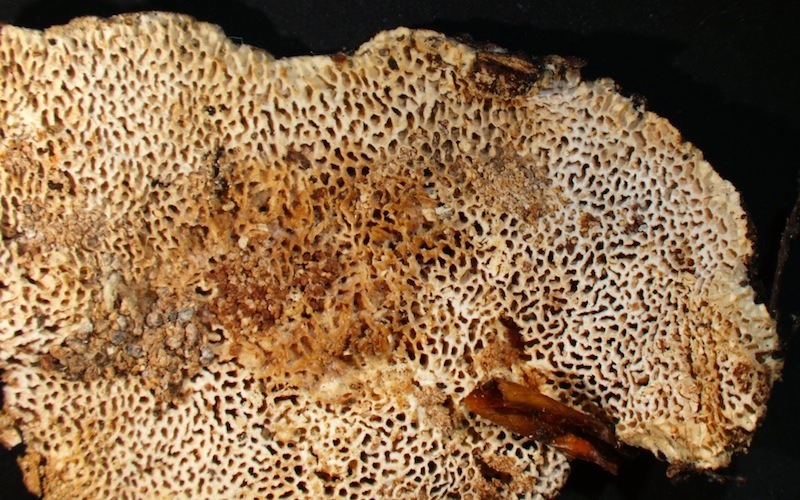 Nach einer ausführlichen mikroskopischen Untersuchung bin ich doch bei A. malicola s. l. gelandet, obwohl die resupinaten Fruchtkörper etwas untypisch sind (sie entwickelten sich wohl auf der Unterseite eines Astes, der vor kurzem umgedreht wurde, weshalb ich die Wachstumsposition nicht abschließend beurteilen konnte). Antrodia malicola s. str. soll übrigens außereuropäisch verbreitet sein (Spirin et al. 2016).