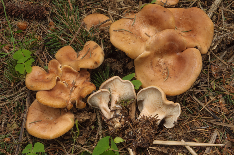 Nun ein schwieriger Fall, gefunden mitten auf einem Forstweg an feuchter Stelle zwischen diversen Moosen (auch Sphagnum). Im Feld hätte ich nicht an einen Trichterling gedacht, letztendlich bin ich aber bei einem solchen gelandet: