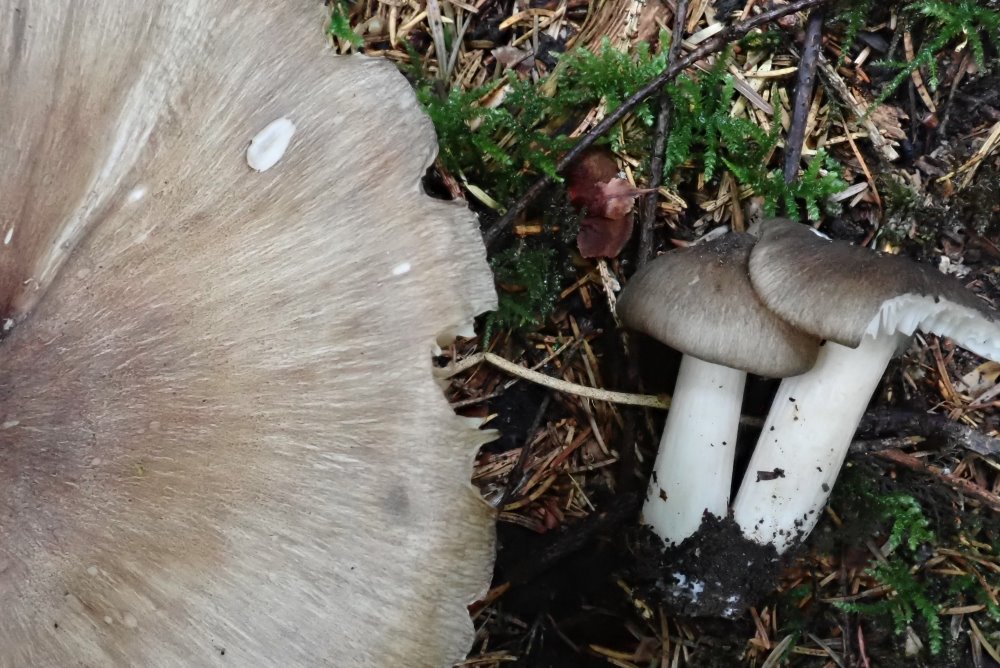 Gestern war ich im selben Gebiet unterwegs, wo ich im vergangenen Sommer die Megacollybia marginata gefunden hatte. Bei uns im Ländle ist das Pilzaufkommen immer noch viel spärlicher als in Ostösterreich, jedoch hatte es u. a. einige Breitblatt-Rüblinge. Natürlich schaue ich jetzt immer genauer hin, wenn ich solche sehe. Und gestern war das Ergebnis mehr als verblüffend: Bei meinem Rundgang traf ich auf 8 Kollektionen wie folgt: