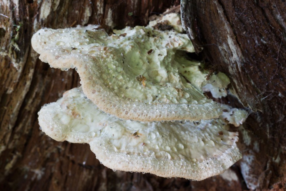 an sehr stark verwitterten Fichten-Strünken immer wieder Oligoporus guttulatus: