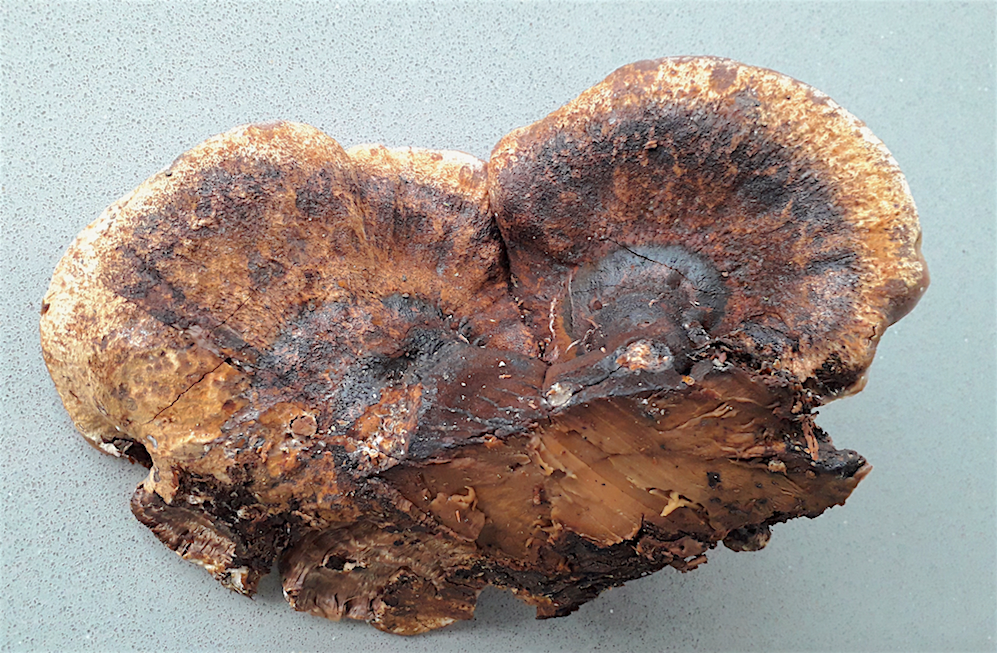 vermutlich Fichte oder Weisstanne. Geruch angenehm pilzig-süsslich. Die Fruchtkörper sind an der Basis zäh