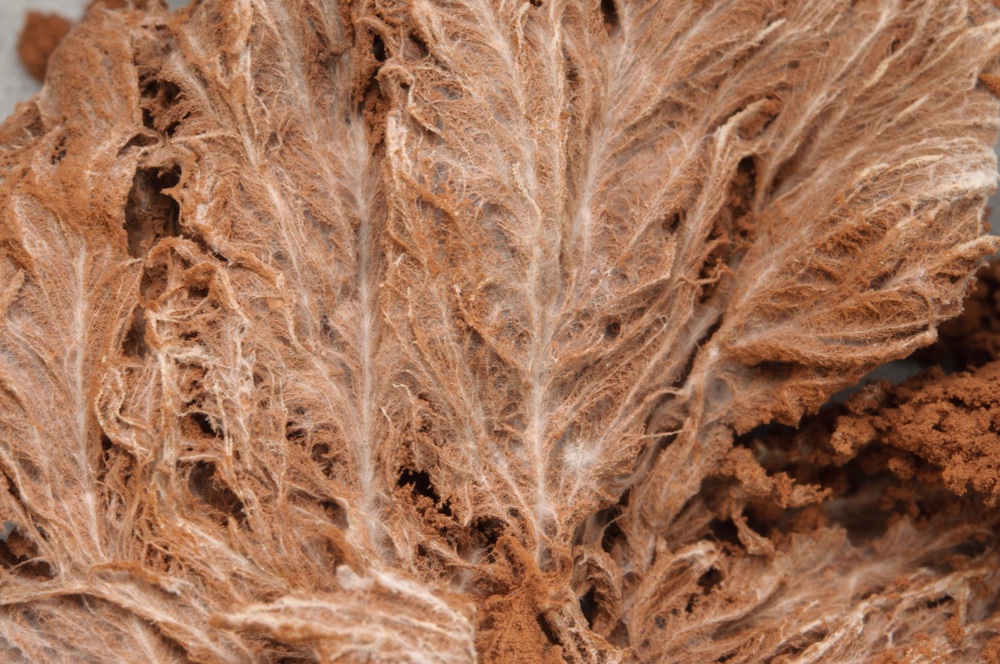 Trichoderma pulvinatum (links) und Trichoderma protopulvinatum (rechts): Alter Fruchtkörper von Fomitopsis pinicola.