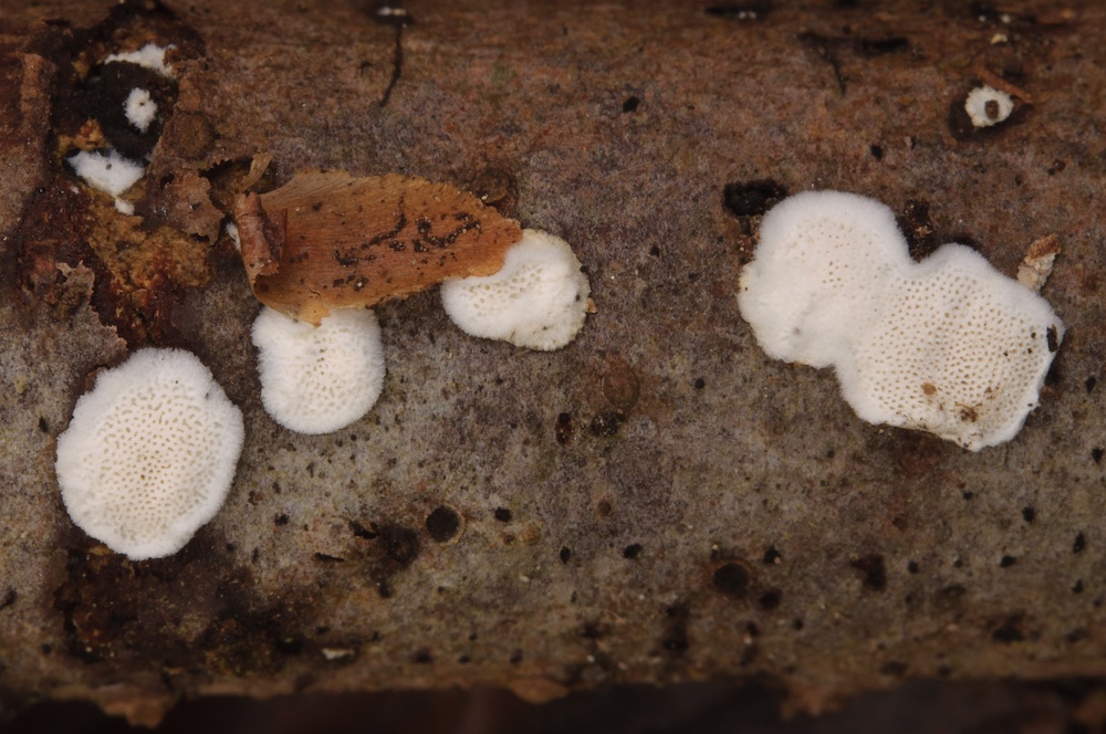 Da auch Bernicchia & Gorjón Cytidiella albida = Phlebia albida als resupinat beschreiben, ohne jeglichen Hinweis auf Bildung von Hutkanten, habe ich die Möglichkeit nicht in Erwägung gezogen, dass meine aktuelle Kollektion mit deutlich hütchenbildenden Fruchtkörpern diese Art sein könnte.