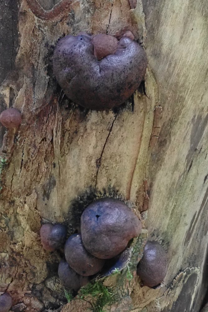 diese Daldinia gehört wohl zu den häufigsten dieser Gattung und wurde früher vermutlich oft fehlbestimmt. Hier an einer stehenden, dürren Esche. Diese Exemplare hatten derart ausgesport, dass das Transportbehältnis komplett schwarz wurde.