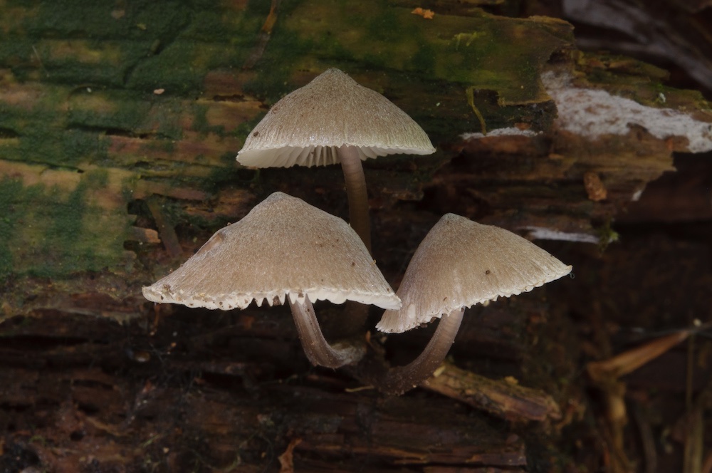 Psathyrella hispida: Über Bach liegender, morscher Fagus-Stamm. Möglicherweise ein Synonym von Cystoagaricus hirtosquamulosus.