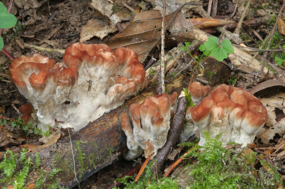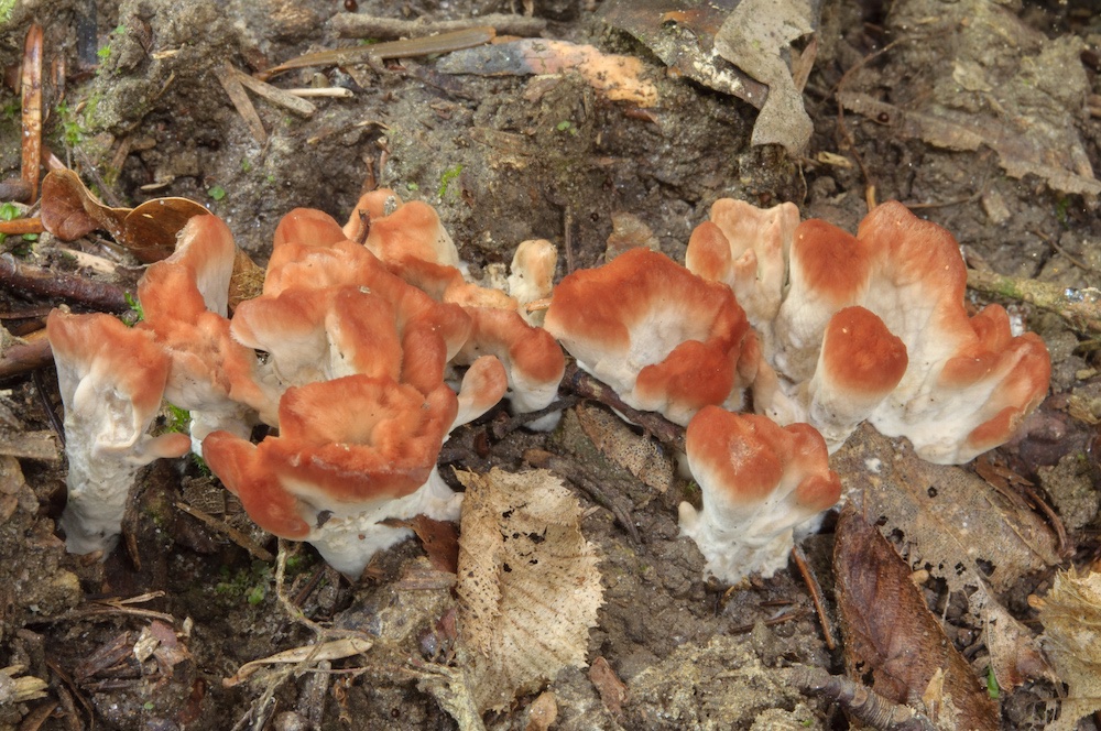 Cotylidia pannosa: Rückegasse im Mischwald. Danke an Gerhard und Bernd, die mit uns nochmals zur Fundstelle gefahren sind.
