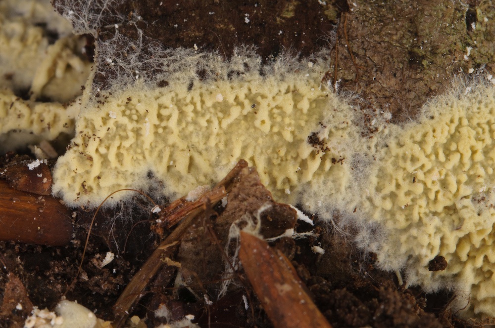 Phlebia cremeoalutacea: Liegender Picea-Stamm.