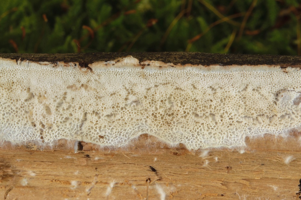 Postia perdelicata: Liegender Abies-Stamm.