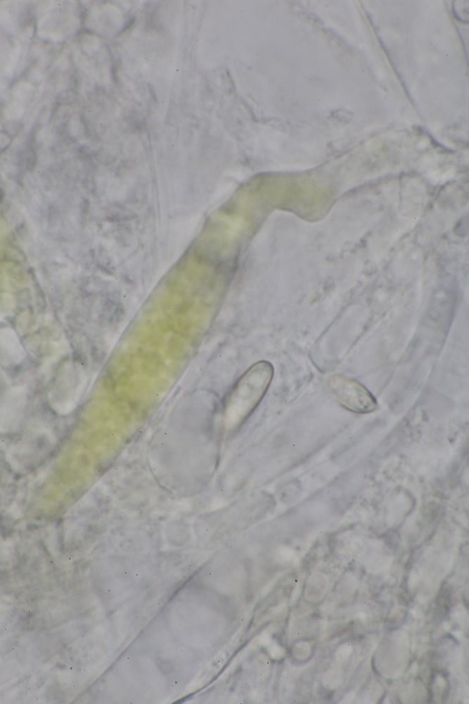 #2vielleicht noch als Ergänzung: ich denke "mein" Röhrling gehört in die Gruppe um X. subtomentosus. In der Datenbank ist eine gelbhütige Form angeführt. Die von mir gemessenen Sporen (Mittelwert 10,5 x 3,9) sind jedenfalls zu klein für Xerocomus subtomentosus.