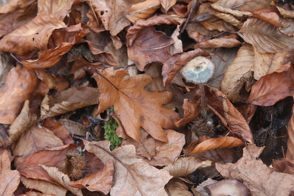 ab morgen ist Schneefall angesagt, die Temperaturen sind bereits gegen Null gesunken. Also noch einmal raus, bevor die weise Pracht alles zudeckt. Einen Blätterpilz begleite ich seit 2015, immer am selben Standort. Bei der ersten Begegnung waren über zwanzig Exemplare ausmachbar, junge waren keine darunter. Die zeigten sich 2016 und haben mit den folgenden Aufnahmen farblich wenig gemeinsam. Im Frühjahr 2017 hat ein Bauer dort sein Krafl zwischengelagert, darauf haben die Psilos im Spätherbst stinksauer reagiert. Drei Exemplare, ich dachte, der Standort ist im Niedergehen begriffen. Mit seinem Zeug ist der Landwirt abgefahren, heute waren sie wieder in der Zwanzigerliga vertreten.