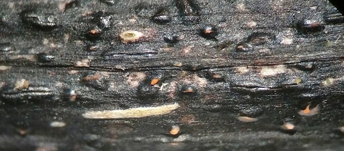 völlig klar, man sollte solch schwarze Krusten nicht rein makroskopisch bestimmen. Wobei hier der orangefarbene "Saft", der austritt, doch ein sehr hilfreiches Merkmal darstellt. Und man weiß dann auch, dass der Pilz reif ist, also Konidien bildet.